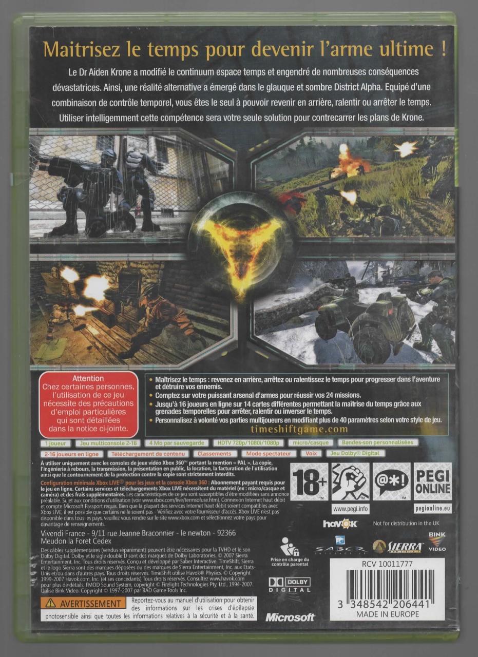L2 - Timeshift Xbox 360 - EAN : 3348542206441 - ARTICLE OCCASION EN TRES BON ETAT GÉNÉRAL - TEST SUR CONSOLE ( Core , Elite , Arcade , 360 S , Xbox 360 E , Xbox SX ) BOITIER ORIGINAL XBOX 360 - JEUX JOUABLE EN FRANCAIS - LIVRAISON ULTRA RAPIDE EN COLIS SUIVI PROTÈGE - COVER FR - COMPLET CIB