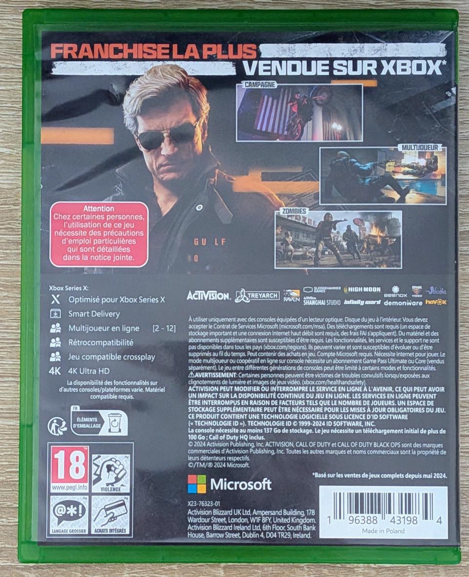 L2 - Call of Duty : Black Ops 6 Xbox Serie S/X - EAN : 196388431984 - ARTICLE OCCASION EN TRES BON ETAT GÉNÉRAL - TEST SUR CONSOLE OK- BOITIER ORIGINAL XBOX SX - JEUX JOUABLE EN FRANCAIS - LIVRAISON ULTRA RAPIDE EN COLIS SUIVI PROTÈGE - COVER FR - COMPLET CIB