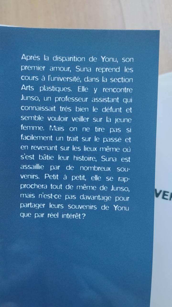 Après la disparition de Yonu, son premier amour, Suna reprend les cours à l'université, dans la section Arts plastiques. Elle y rencontre Junso, un professeur assistant qui connaissait très bien le défunt et semble vouloir veiller sur la jeune femme. Mais on ne tire pas si facilement un trait sur le passé et en revenant sur les lieux même où s'est bâtie leur histoire, Suna est assaillie par de nombreux souvenirs. Petit à petit, elle se rapprochera tout de même de Junso, mais n'est-ce pas davantage pour partager leurs souvenirs de Yonu que par réel intérêt?