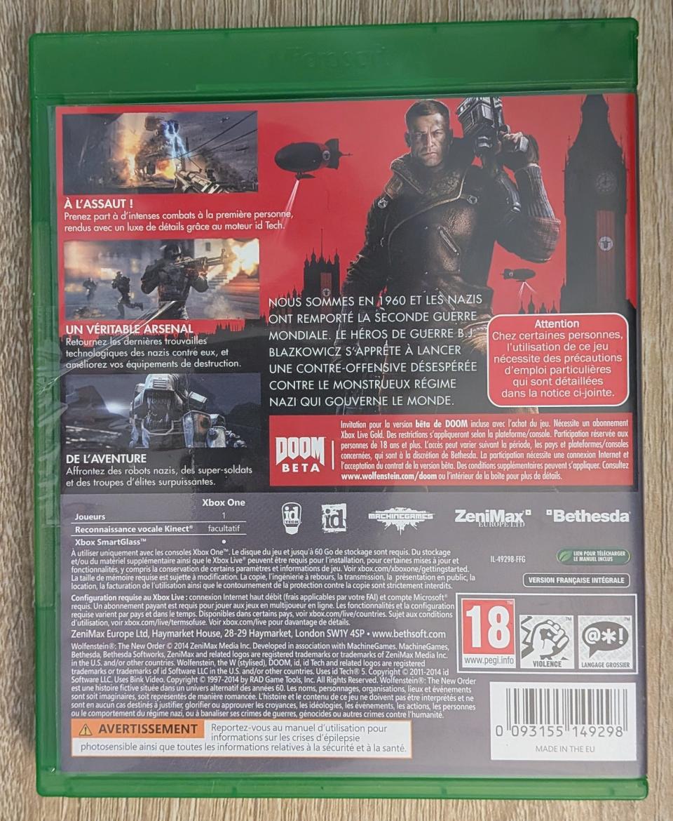 L2 - Wolfenstein - The New Order Xbox One - EAN : 093155149298 - ARTICLE OCCASION EN TRES BON ETAT GÉNÉRAL - TEST SUR CONSOLE OK- BOITIER ORIGINAL XBOX ONE - JEUX JOUABLE EN FRANCAIS - LIVRAISON ULTRA RAPIDE EN COLIS SUIVI PROTÈGE - COVER E.U/FR - COMPLET CIB
