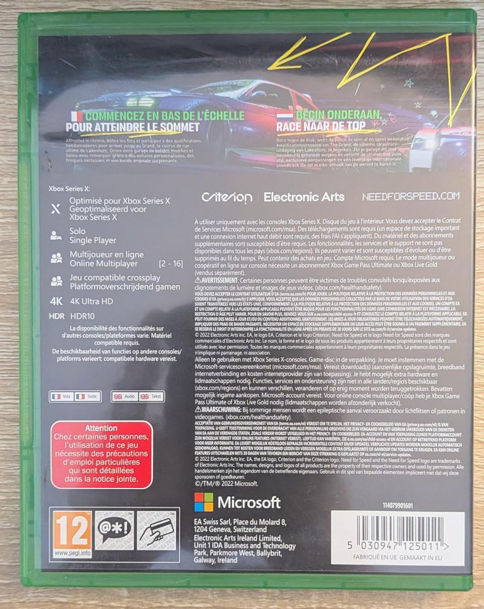 L2 - Need for Speed : Unbound Xbox Serie S/X - EAN : 5030947125011 - ARTICLE OCCASION EN TRES BON ETAT GÉNÉRAL - TEST SUR CONSOLE OK- BOITIER ORIGINAL XBOX SX - JEUX JOUABLE EN FRANCAIS - LIVRAISON ULTRA RAPIDE EN COLIS SUIVI PROTÈGE - COVER E.U/FR - COMPLET CIB