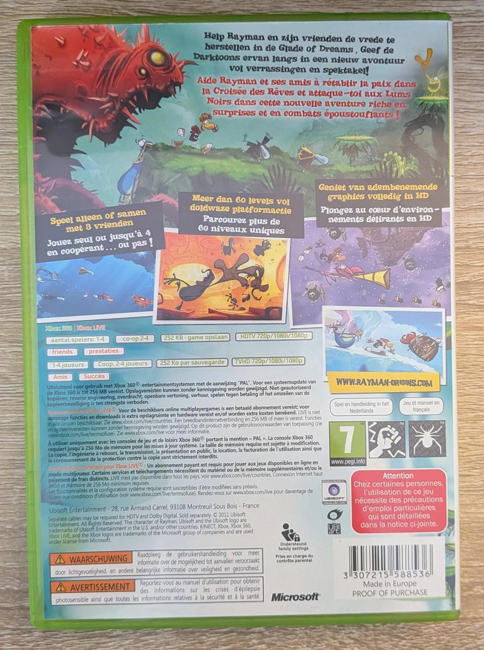 L2 - Rayman Origins Xbox 360 - EAN : 3307215588536 - ARTICLE OCCASION EN TRES BON ETAT GÉNÉRAL - TEST SUR CONSOLE ( Core , Elite , Arcade , 360 S , Xbox 360 E , Xbox SX ) BOITIER ORIGINAL XBOX 360 - JEUX JOUABLE EN FRANCAIS - LIVRAISON ULTRA RAPIDE EN COLIS SUIVI PROTÈGE - COVER FR - COMPLET CIB