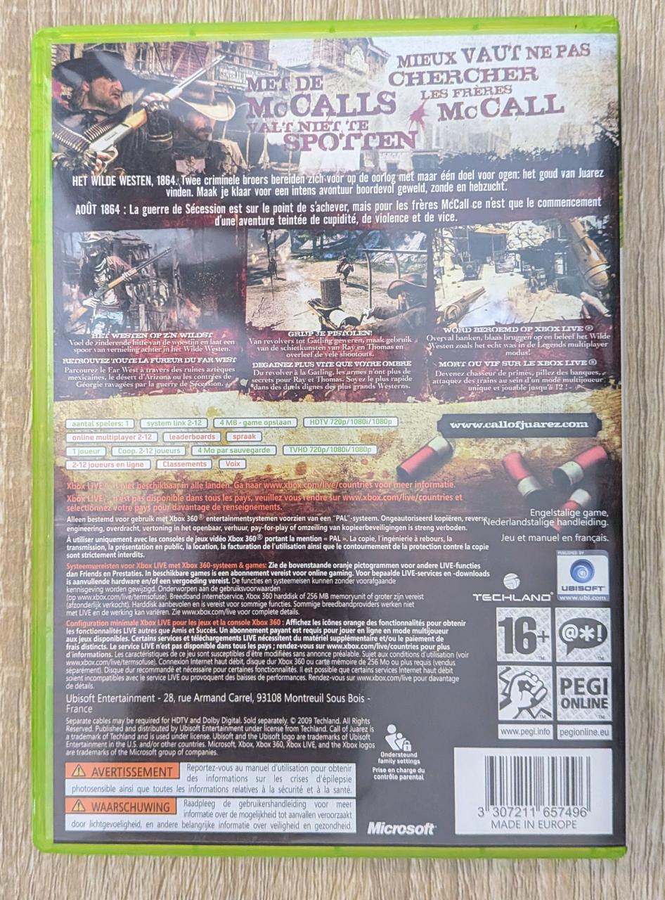 L2 - Call Of Juarez - Bound In Blood Xbox 360 - EAN : 3307211657496 - ARTICLE OCCASION EN TRES BON ETAT GÉNÉRAL - TEST SUR CONSOLE ( Core , Elite , Arcade , 360 S , Xbox 360 E , Xbox SX ) BOITIER ORIGINAL XBOX 360 - JEUX JOUABLE EN FRANCAIS - LIVRAISON ULTRA RAPIDE EN COLIS SUIVI PROTÈGE - COVER E.U - COMPLET CIB