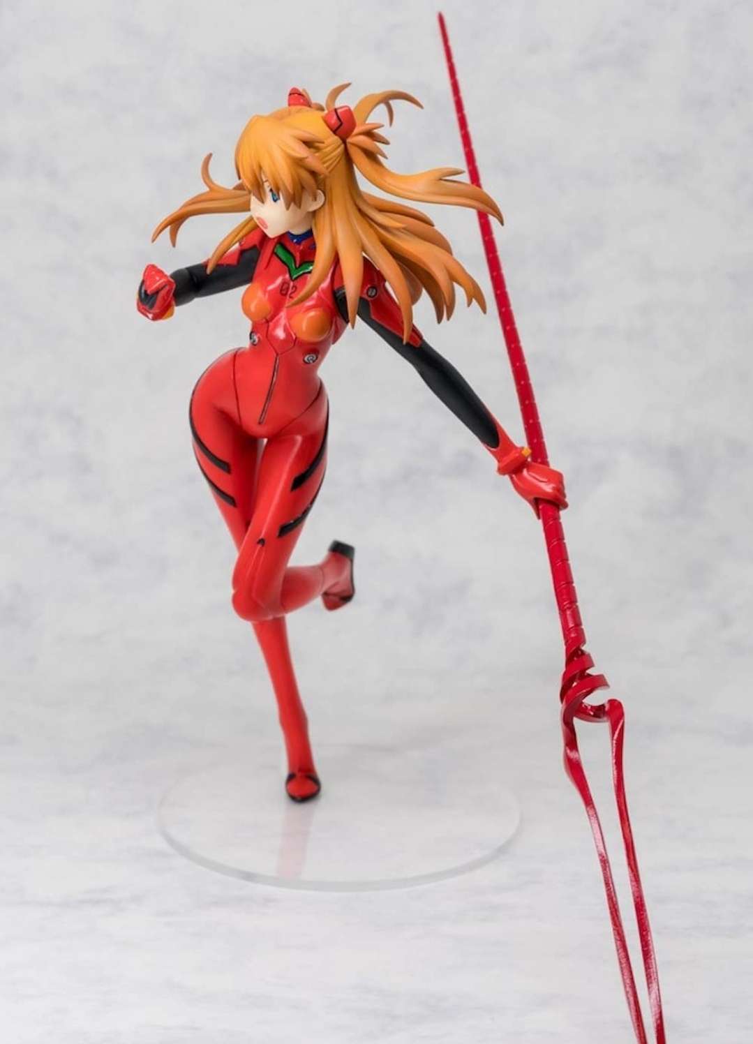 From the Rebuild of Evangelion anime films, Asuka is wielding the Spear of Longinus in this highly detailed figure.