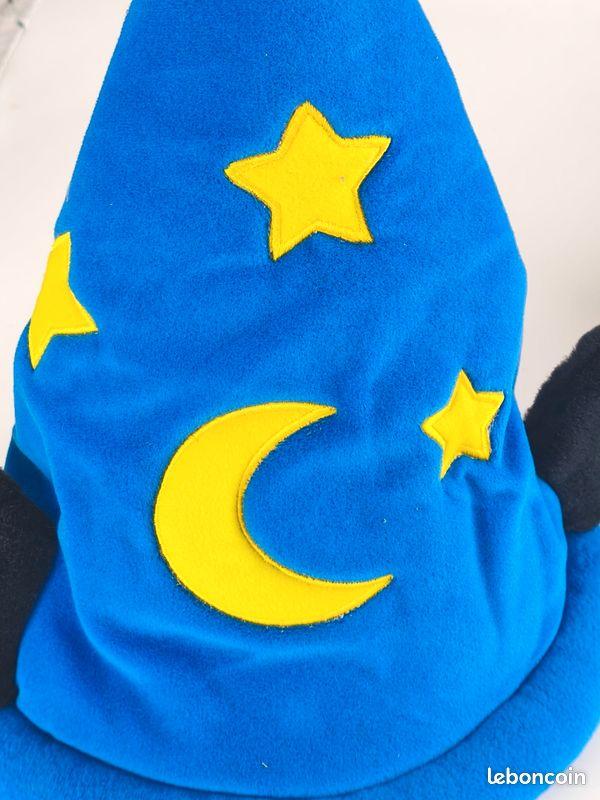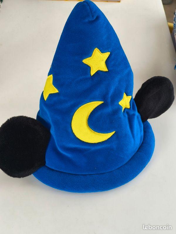 - Caractéristiques : Chapeau bleu avec lune et étoiles jaunes, oreilles de Mickey