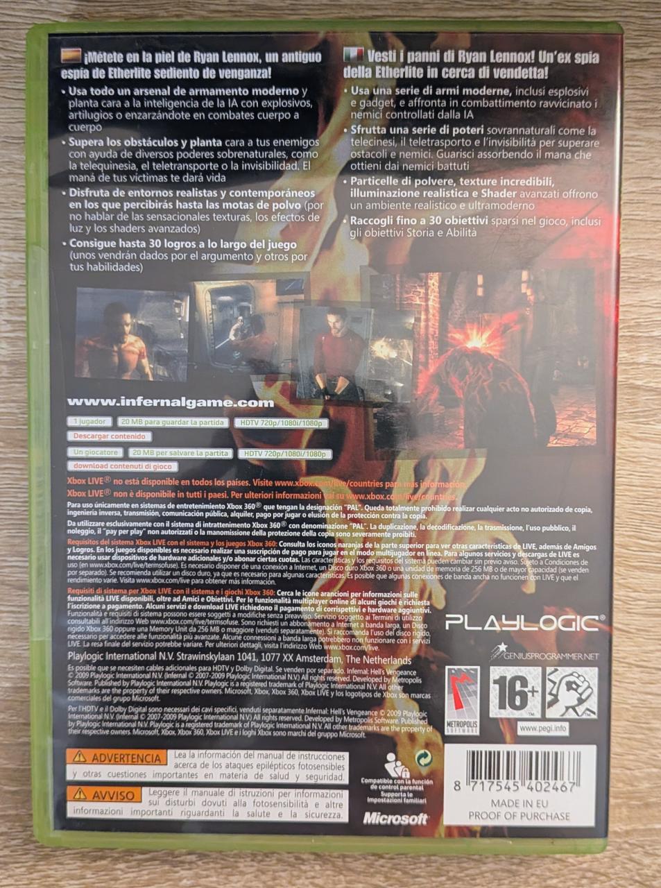 L2 - Infernal - Hell's Vengeance Xbox 360 - EAN : 8717545402467 - ARTICLE OCCASION EN TRES BON ETAT GÉNÉRAL - TEST SUR CONSOLE ( Core , Elite , Arcade , 360 S , Xbox 360 E , Xbox SX ) BOITIER ORIGINAL XBOX 360 - JEUX JOUABLE EN FRANCAIS - LIVRAISON ULTRA RAPIDE EN COLIS SUIVI PROTÈGE - COVER E.U - COMPLET CIB