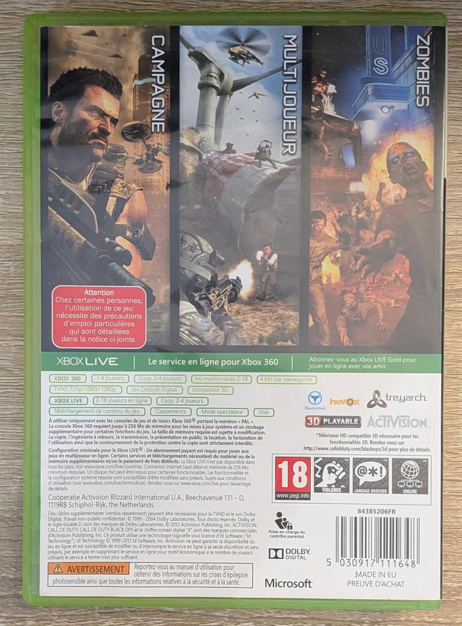 L1 - Call Of Duty - Black Ops II Xbox 360 - EAN : 5030917111648 - ARTICLE OCCASION EN TRES BON ETAT GÉNÉRAL - BOITIER ORIGINAL XBOX 360 - JEUX JOUABLE EN FRANCAIS - LIVRAISON ULTRA RAPIDE EN COLIS SUIVI PROTÈGE - COVER FR - COMPLET CIB
