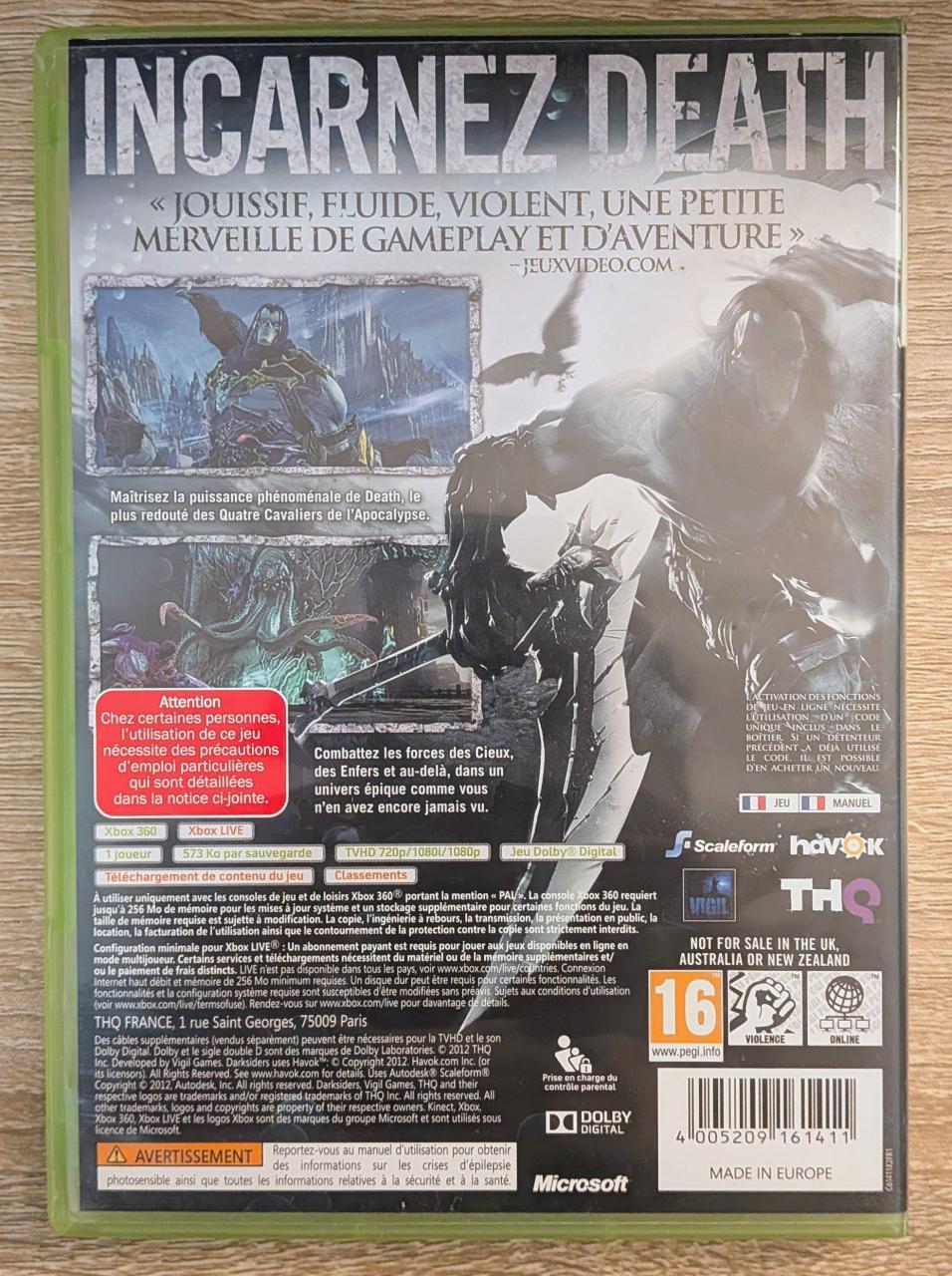 L2 - Darksiders Ii Xbox 360 - EAN : 4005209161411 - ARTICLE OCCASION EN TRES BON ETAT GÉNÉRAL - TEST SUR CONSOLE ( Core , Elite , Arcade , 360 S , Xbox 360 E , Xbox SX ) BOITIER ORIGINAL XBOX 360 - JEUX JOUABLE EN FRANCAIS - LIVRAISON ULTRA RAPIDE EN COLIS SUIVI PROTÈGE - COVER FR - COMPLET CIB
